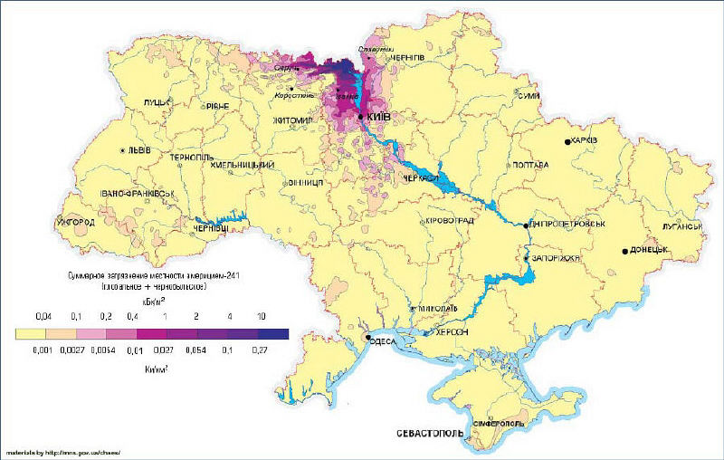 Карта радіоактивного забруднення території України америцієм-241 (241Am)