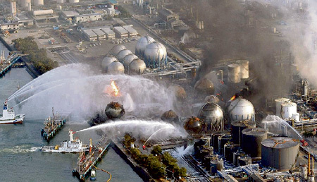 | Японскую АЭС «Фукусима-1» после взрыва в марте 2011-го тоже поначалу тушили водой, но вовремя спохватились и поняли, что это только усилит распространение радиации |